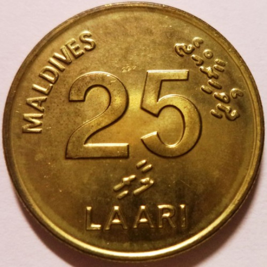 Maldives 25 Laari Unc 2008