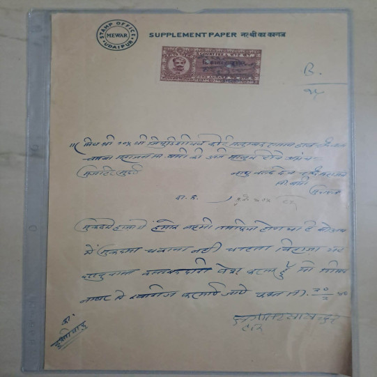 Mewar Stamp Paper With 1 Anna Stamp (mwr3)