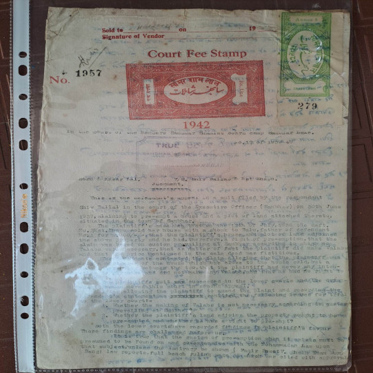 Sambhar 1 Rupee Stamp Paper With Stamp